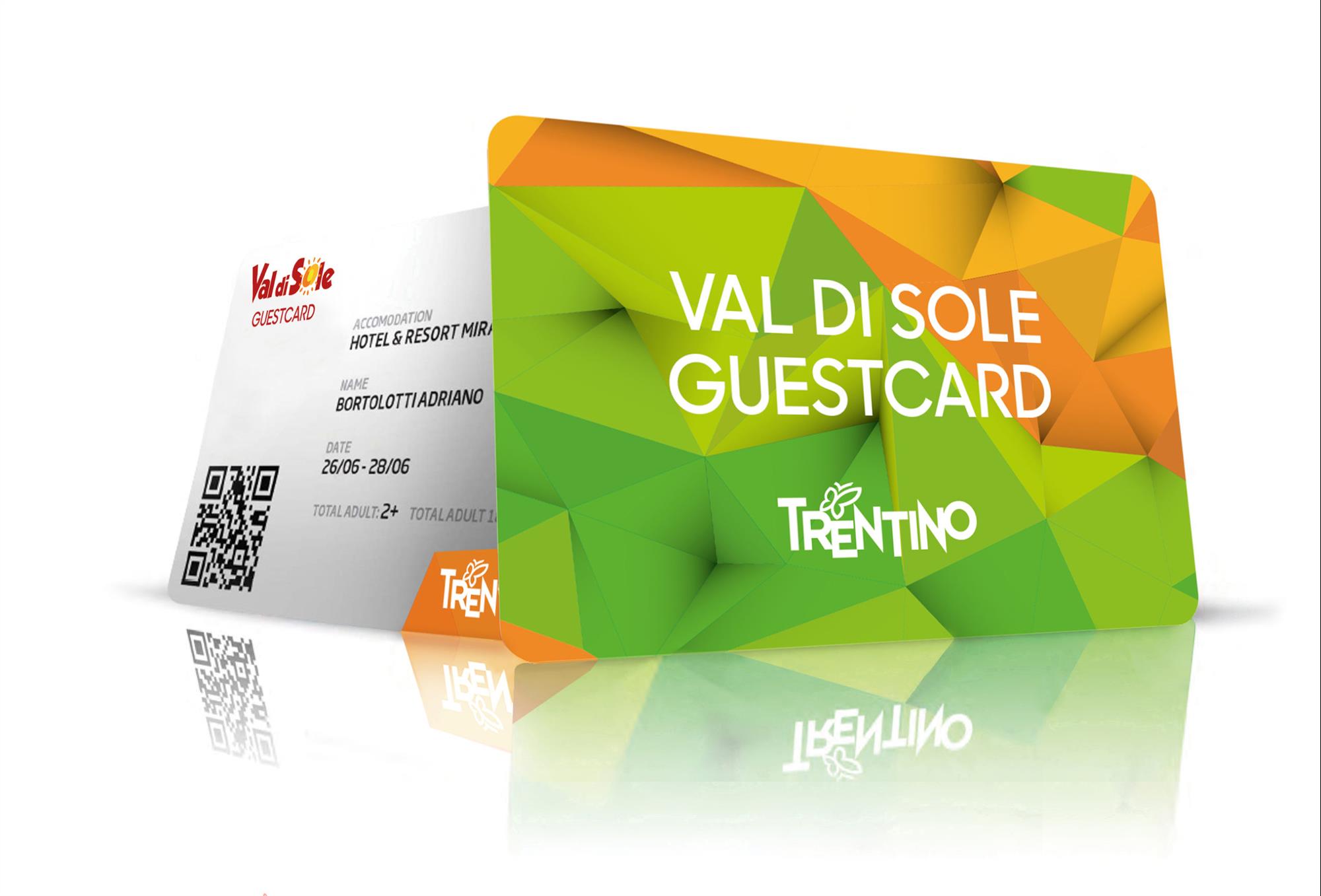 Val di sole guest card funivie. In caso di soggiorno in una struttura convenzionata riceverai la Val di Sole Guest Card al costo di due euro al giorno a persona. Libera circolazione su pullman extraurbani e urbani circolanti in tutto il Trentino e gestiti da Trentino. In quanto struttura aderente alliniziativa al vostro arrivo nel nostro hotel in Trentino a 4 stelle vi verrà consegnata la card che vi permette di usufruire di innumerevoli vantaggi durante il periodo estivoScopriteli tutti qui di seguito.